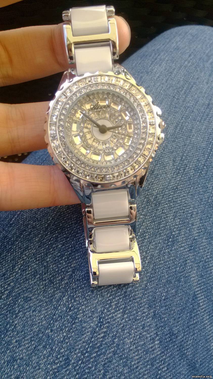 | Не любитель я стразов,и наручных часов , но именно эти проперли милахи. На выбор в стальном цвете и в золоте-но мне стальной понравился больше-не люблю облезающую позолоту и керамика в браслете подкупила в общем :