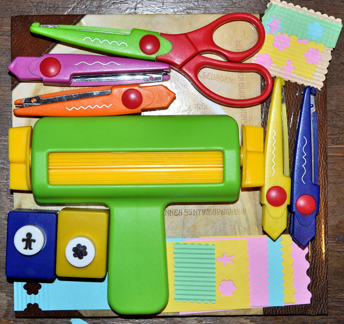 | А мы купили мальку наборчик фигурных ножниц (5шт). В нем еще 2 фигурных дырокола (цветочег и человечег) и приспособление для гофрирования бумаги. Довольная как слон)) Я в первую очередь)) Теперь я вырезаю и гофрирую, а Анечка клеит на картонки. Наборчик называется craft, взяли за 84 грн в интернет магазине (Хотя просто фигурные ножницы сейчас около 25 грн) Канцелярия - моя слабость вот картинка, правда маленькая