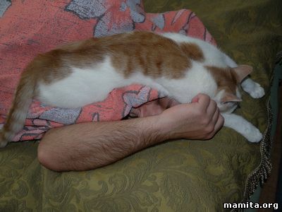| Цитата DjiD (  ) Ось так спить наш кошак (Валік про це ще не знав, поки фото не побачив): Фото на п'ять балів! Да, Персик знає як зручніше вмоститись на господареві