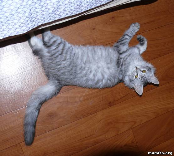 | ursula, если черная, может быть и клещ. Не смертельно. Наблюдай просто. Моя тоже ухи стала чесать, чуток серки есть в одном ухе, пока я собралась вычистить, она уже все убрала. Блин, свинка разбаловалась и не ест. Пробует, кушает чайную ложку и нюхает - а что там в другой плошке. Ест чуток сушки, бежит ко мне и, глядя в глаза и жалобно попискивая, трогает меня лапкой "кушать давай". При этом от молочной каши отказалась, от сметанки тоже, а за буженину орала благим матом. Сегодня звонила ее "мамка", интересовалась, как у нас дела. Порадовалась за Боню. Остальные три все еще у нее. Дымкина будущая хозяйка сьехала, когда узнала, что котейке скоро 5 месяцев, Тигрулю не отдали - его хотели взять в частный дом, "потому что дом возле дороги и больше года ни один кот не живет". Решили таким хозяевам не отдавать. А на полосатую кошечку вообще спроса нет... Хотя и она симпатяга.